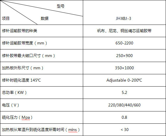膠帶輸送機在運行過程中,由于物料中含異物或機械本身故障,會發(fā)生較長距離的沿膠帶縱向的撕裂。利用JHXBJ-3型電熱式膠帶修補器,可迅速有效地修復膠帶的縱向撕裂,另外本廠可根據(jù)用戶的需求,生產(chǎn)特殊規(guī)格的修補器械。